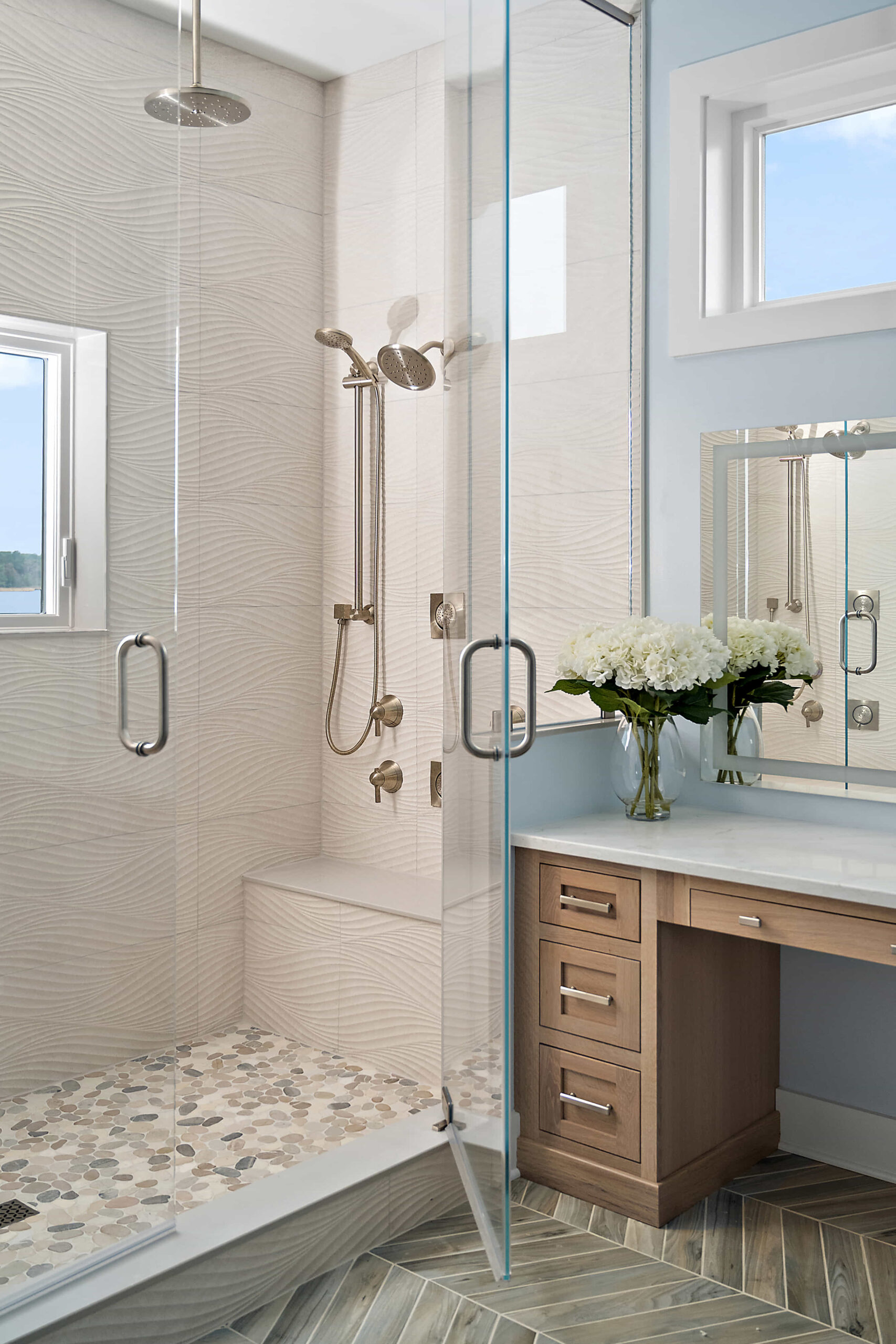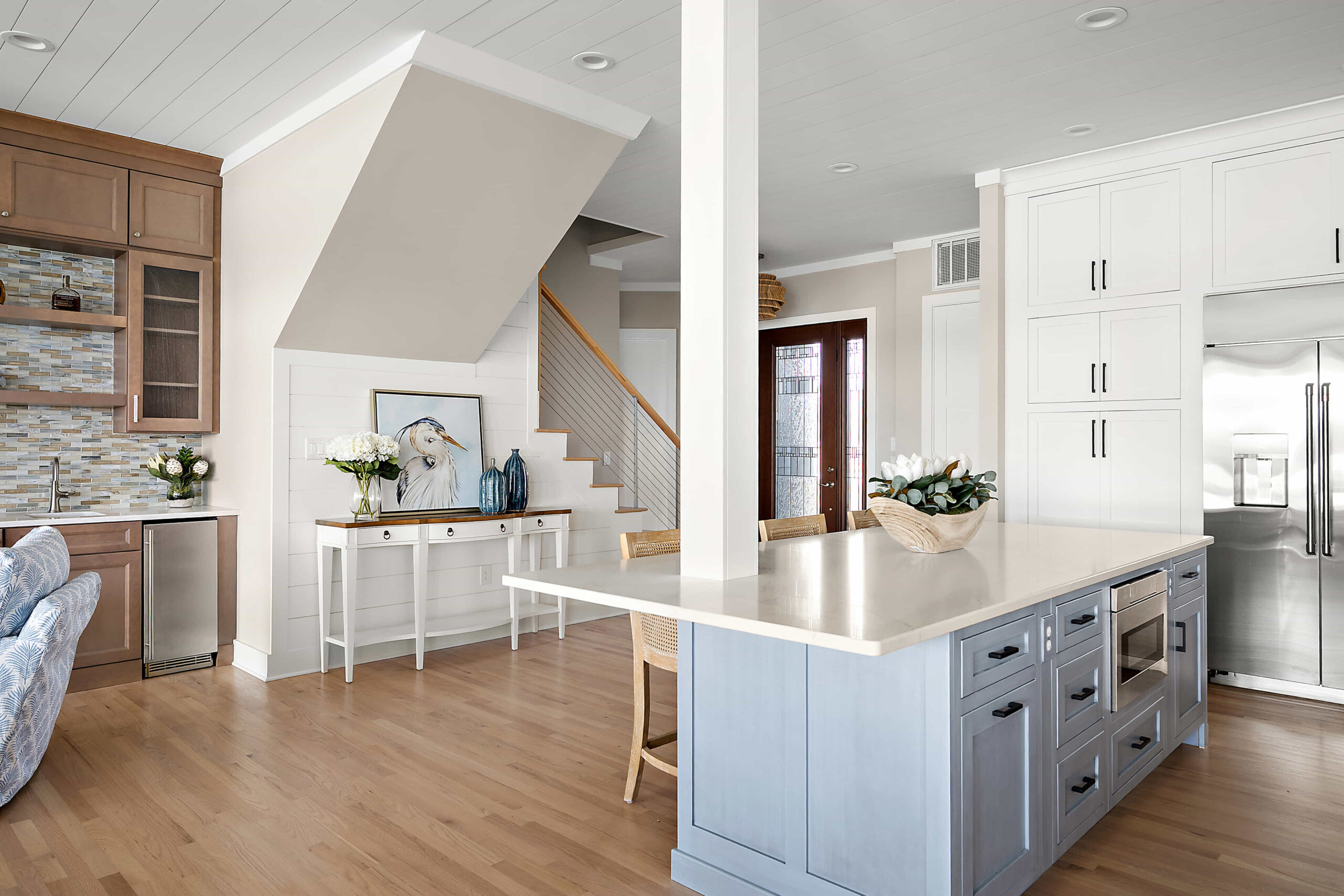 Her unique expertise, which includes project-managing new home builds in the coastal region & out of town as well, extends beyond residential and flows effortlessly into commercial. She works directly with architectural blueprints to oversee the design and selection of new floors, doors, trim, counters, lighting, etc. Every room she touches transforms into a haven of beauty and functionality.